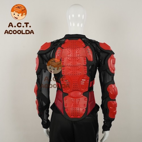 เกราะป้องกันครอบคลุมบริเวณหลัง หน้าอก แขนท่อนล่าง และข้อศอก ส่วนด้านหลังและเอวมีแผงป้องกันโพลีโพรพีลีนแบบเจาะรูเพื่อเสริมความปลอดภัยให้กับกระดูกสันหลัง ชุดนี้ยังประกอบด้วยเข็มขัดคาดเอวแบบปรับได้ สายสะพายไหล่แบบปรับได้ และแผ่นรองด้านนอกแบบเจาะรู ส่วนด้านในประกอบด้วยผ้าเจอร์ซีย์ยืดหยุ่นแบบตาข่ายหยาบ ซับในตาข่ายโพลีเอสเตอร์ด้านหลัง และซับในถักสองด้านเพื่อความสบายยิ่งขึ้น ชุดนี้ยังมีตัวเลือกการปรับแต่งขนาด สี และโลโก้บริษัท จึงเหมาะอย่างยิ่งสำหรับองค์กรและผู้จัดจำหน่ายที่ต้องการสินค้าจำนวนมากพร้อมการจัดส่งที่รวดเร็ว
