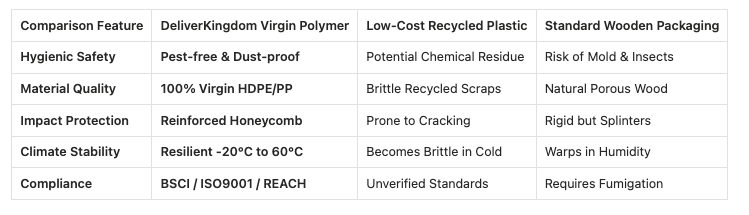 เดอะ บรรจุภัณฑ์แบบปลอกหุ้มคุณภาพสูงจาก DeliverKingdom ออกแบบมาโดยเฉพาะสำหรับอุตสาหกรรมที่การปนเปื้อนของผลิตภัณฑ์และความเสียหายระหว่างการขนส่งไม่ใช่แค่ความเสี่ยง แต่เป็นความล้มเหลวที่สำคัญ โซลูชันบรรจุภัณฑ์แบบดั้งเดิม เช่น ลังไม้หรือถังพลาสติกรีไซเคิลคุณภาพต่ำ มักทำให้ความปลอดภัยของสินค้าลดลงเนื่องจากเศษไม้ แมลง ความชื้น หรือกลิ่นสารเคมี DeliverKingdom แก้ไขจุดอ่อนเหล่านี้โดยการใช้ โพลิเมอร์ทนแรงกระแทกสูงบริสุทธิ์ 100% (HDPE และ PP) เพื่อสร้างสภาพแวดล้อมที่ปราศจากสิ่งปนเปื้อนและฝุ่นละออง ซึ่งจะช่วยให้เวชภัณฑ์ที่มีมูลค่าสูง อุปกรณ์อิเล็กทรอนิกส์ที่ละเอียดอ่อน และส่วนประกอบที่ใช้ในอุตสาหกรรมอาหาร คงอยู่ในสภาพสมบูรณ์ตั้งแต่ห้องคลีนรูมในการผลิตจนถึงปลายทางทั่วโลก ทำให้องค์กรต่างๆ ได้รับบริการขนส่งที่เชื่อถือได้และเป็นไปตามมาตรฐาน ISO9001