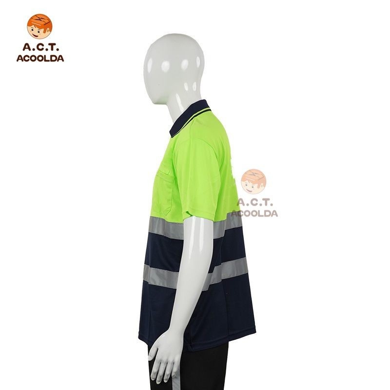 เสื้อโปโลแขนสั้นพร้อมแถบสะท้อนแสงตัวนี้ ออกแบบมาสำหรับพนักงานส่งของ พนักงานส่งของ และพนักงานโลจิสติกส์ที่ต้องทำงานในสภาพอากาศร้อนฤดูร้อน โดดเด่นด้วยแถบสะท้อนแสงแนวนอนสองแถบรอบเอว ช่วยให้มองเห็นได้ชัดเจนแม้ในสภาพแสงน้อย พร้อมคงความเป็นมืออาชีพ ผลิตจากผ้าน้ำหนักเบาระบายอากาศได้ดี ช่วยให้พนักงานรู้สึกเย็นสบายตลอดวัน มีตัวเลือกการปรับแต่งโลโก้ สี และขนาดที่หลากหลาย จึงเหมาะอย่างยิ่งสำหรับยูนิฟอร์มบริษัท การสั่งซื้อจำนวนมาก และโครงการ OEM/ODM
