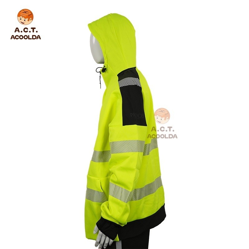 เสื้อแจ็คเก็ตสะท้อนแสงแบบมีฮู้ดกันน้ำนี้เหมาะสำหรับพนักงานส่งอาหาร พนักงานจัดส่งพัสดุ และพนักงานโลจิสติกส์ มาพร้อมคุณสมบัติกันฝนและการมองเห็นในที่แสงน้อย ดีไซน์แบบมีฮู้ดช่วยให้สวมใส่สบายและปลอดภัย เหมาะสำหรับงานกลางแจ้ง